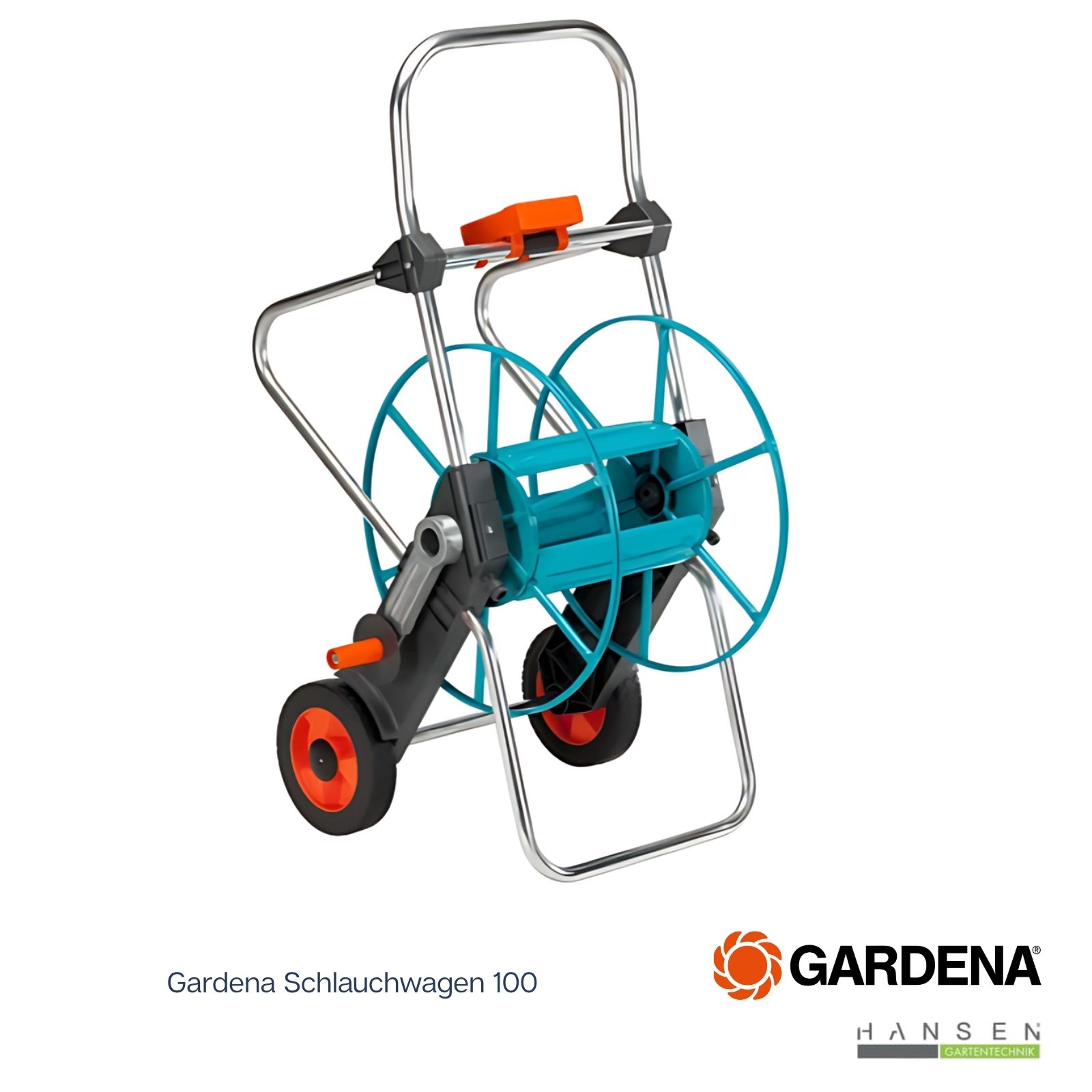 Der robuste GARDENA Metall-Schlauchwagen 100 ist ideal für die platzsparende Lagerung und einen mühelosen Umgang mit besonders langen Gartenschläuchen geeignet.